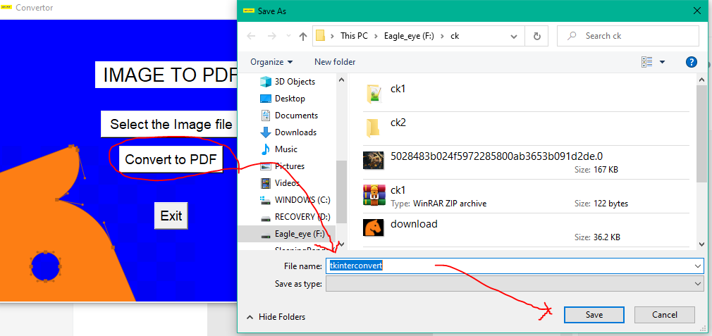 In this version we are using Tkinter to create a window application which will help us in upgrading the basic version of our image conversion code. We are going to read the file using dialog box and when we perform the convert operation it will open a dialog box to save the file and we have to provide the saving filename.